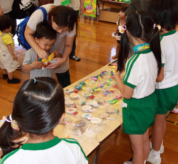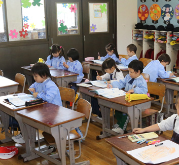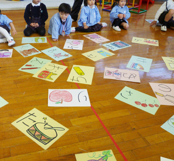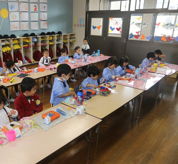 | 10:40 | 一斉活動 | お話 紙芝居 絵本 折り紙 お絵かき ワーク 作品帳 あいうえお 数と数字 リズム遊び メロディオン練習 手遊びなど |