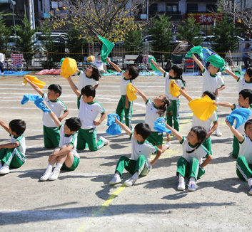 - 体育(健康)・・・幼児の体力不足が目立つおり、当園では専任の体育講師による指導によって、子ども達の興味や能力に応じた無理のない運動を進めています。