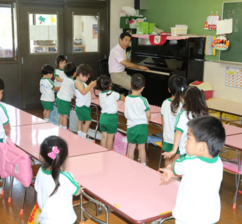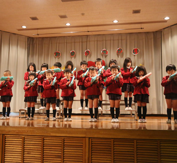 - 音楽リズム・・・専門講師による音楽指導、音感教育、合奏、鼓笛など美的な表現活動を豊かに育ててかつ楽しんで展開されるような配慮を致します。