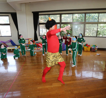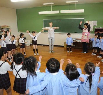 - 英語・・・年中、年長合同でECCジュニアの講師による英語のレッスンを実施しております。歌や身体を動かしながら基礎的ながらもネイティブな英語をしっかりと学ぶことができます。